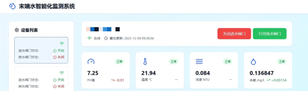 以往,水質(zhì)監測多靠人工定期抽檢,就像“盲人摸象”,只能捕捉階段性情況。而新系統徹底打破了這種局限,它能對小區管網(wǎng)末梢水的余氯、濁度、pH值、溫度等關(guān)鍵指標,進(jìn)行24小時(shí)不間斷在線(xiàn)“盯防”,數據實(shí)時(shí)同步至監控平臺,實(shí)現了從“階段性抽查”到“全時(shí)段守護”的質(zhì)變。