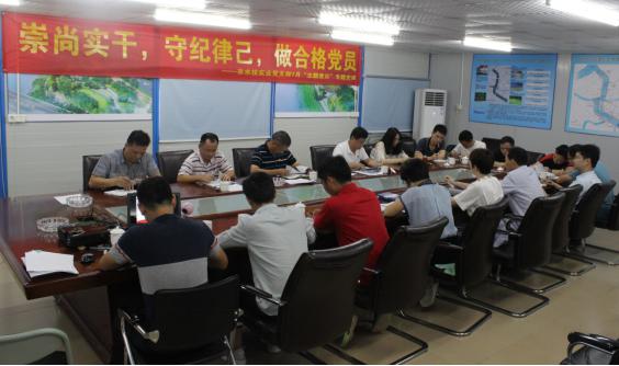 97周年,進(jìn)一步激發(fā)全體黨員干事創(chuàng )業(yè)、創(chuàng )優(yōu)爭先的熱情,2018年7月20日,市水投實(shí)業(yè)黨支部在新開(kāi)河項目部會(huì )議室舉行了“崇尚實(shí)干,守紀律己,做合格黨員”專(zhuān)題黨課作為7月“主題黨日”活動(dòng)。